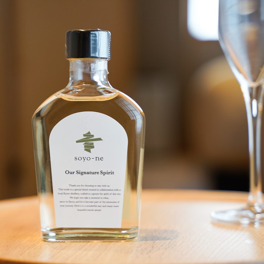 『soyo-ne』『soyo-ka』のブランドコンセプトは「時をかさね、時をこえた『きょう』の魅力にであう」。京都の静かな街並みに佇む2棟のホテルは、それぞれ「音」と「香」をテーマに五感で京都を味わうホテルだ。日本三大酒造地帯である伏見を擁する京都では、日本酒もまた五感に語りかけるエレメントです。あえて“詰め込まない”ことで内装に漂う静けさとゆとりに加え、心解きほぐす日本酒でもホテルステイを楽しんでもらいたいとの思いから開発した。酔心して、思いを馳せるは平安時代か?はたまた幕末か!時をこえて京の都を楽しんで。