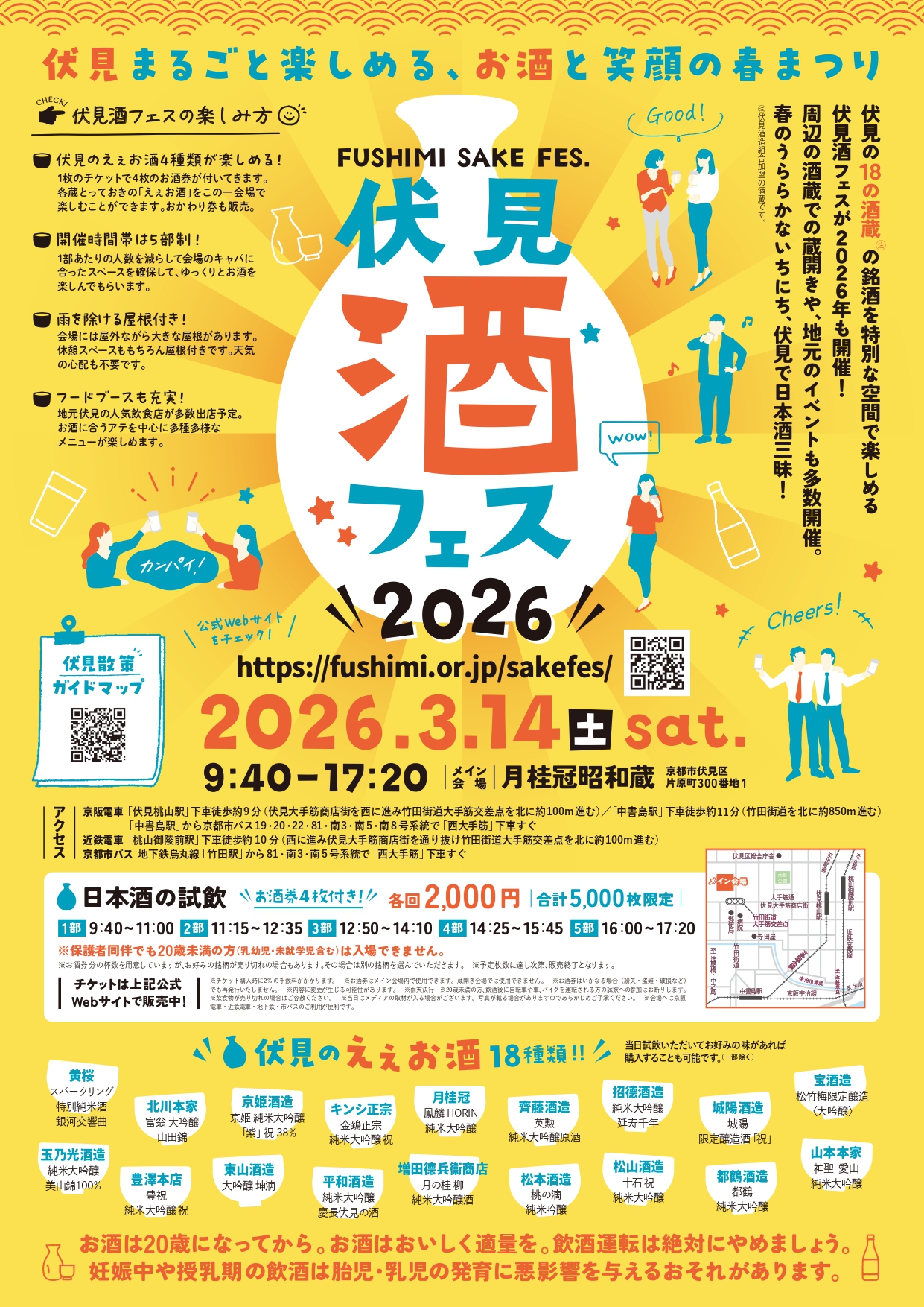 第三回「伏見 酒フェス~FUSHIMI SAKE FES.~」 が2026年3月14日(土)に開催!えぇお酒18銘柄の詳細を発表!