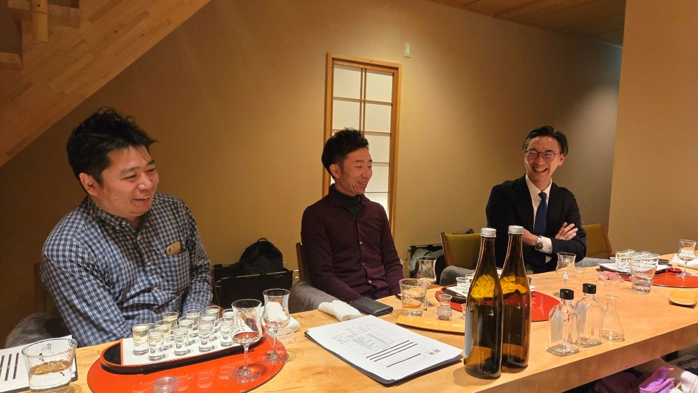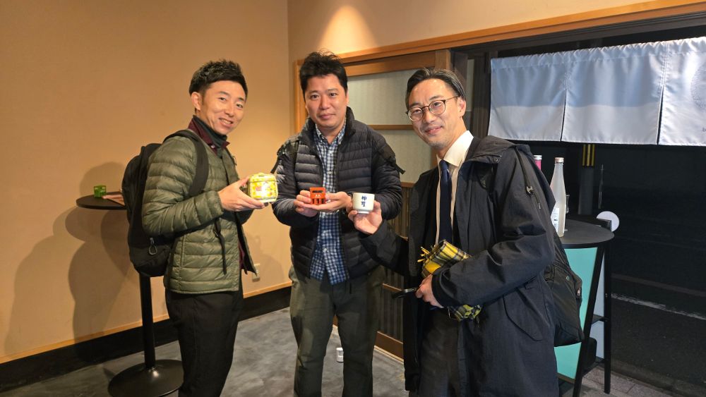 開催にあたって、オリジナル日本酒開発のためMy Sake World御池別邸にやってきた運営メンバー有志。(左から:高山将一さん、中島彰さん、岩坂潤さん)