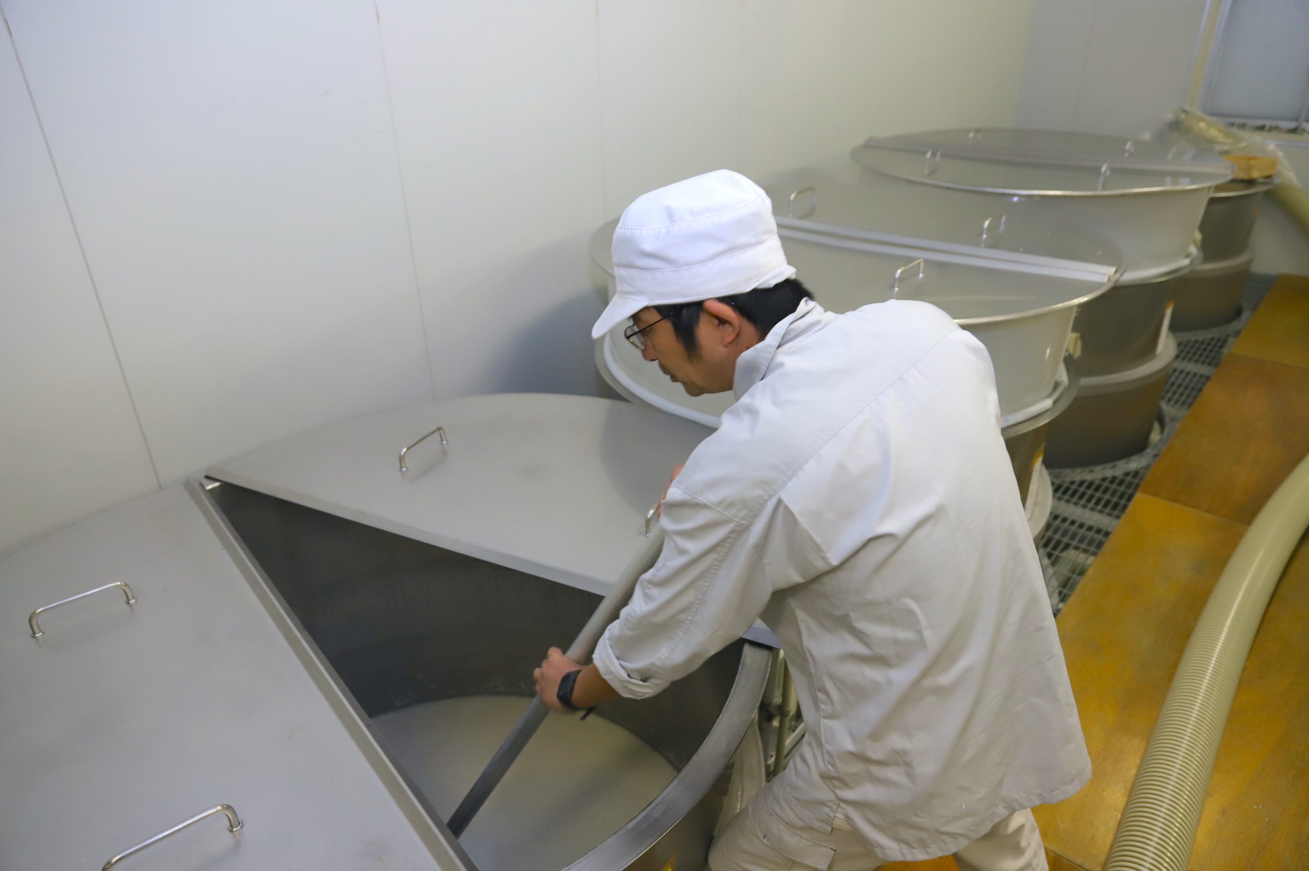 「社是でもある『品質第一』を徹底するために酒造りの全ての工程を大切にしていますが、その中でも特に麹造り、酒母造りには細心の注意を払っています。品質は落とさず生産効率を上げるために機械化した工程もありますが、温度や時間経過で変化していく麹造りや酒母造りにはかなり繊細な作業が求められます。そこだけは熟練の手作業の技にはかないません。昔ながらの手造りを大切にしている部分です。」と廣松社長。