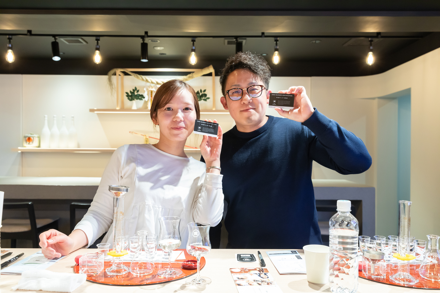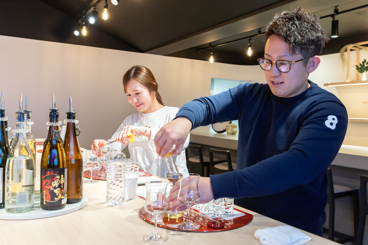 ただ日本酒を飲むだけではない、ビーカーやメスシリンダーを使って体験に集中する姿や表情は新たな一面を引き出す。またつくったお酒を2人で飲み比べるとお互いの好みも知ることができる。
