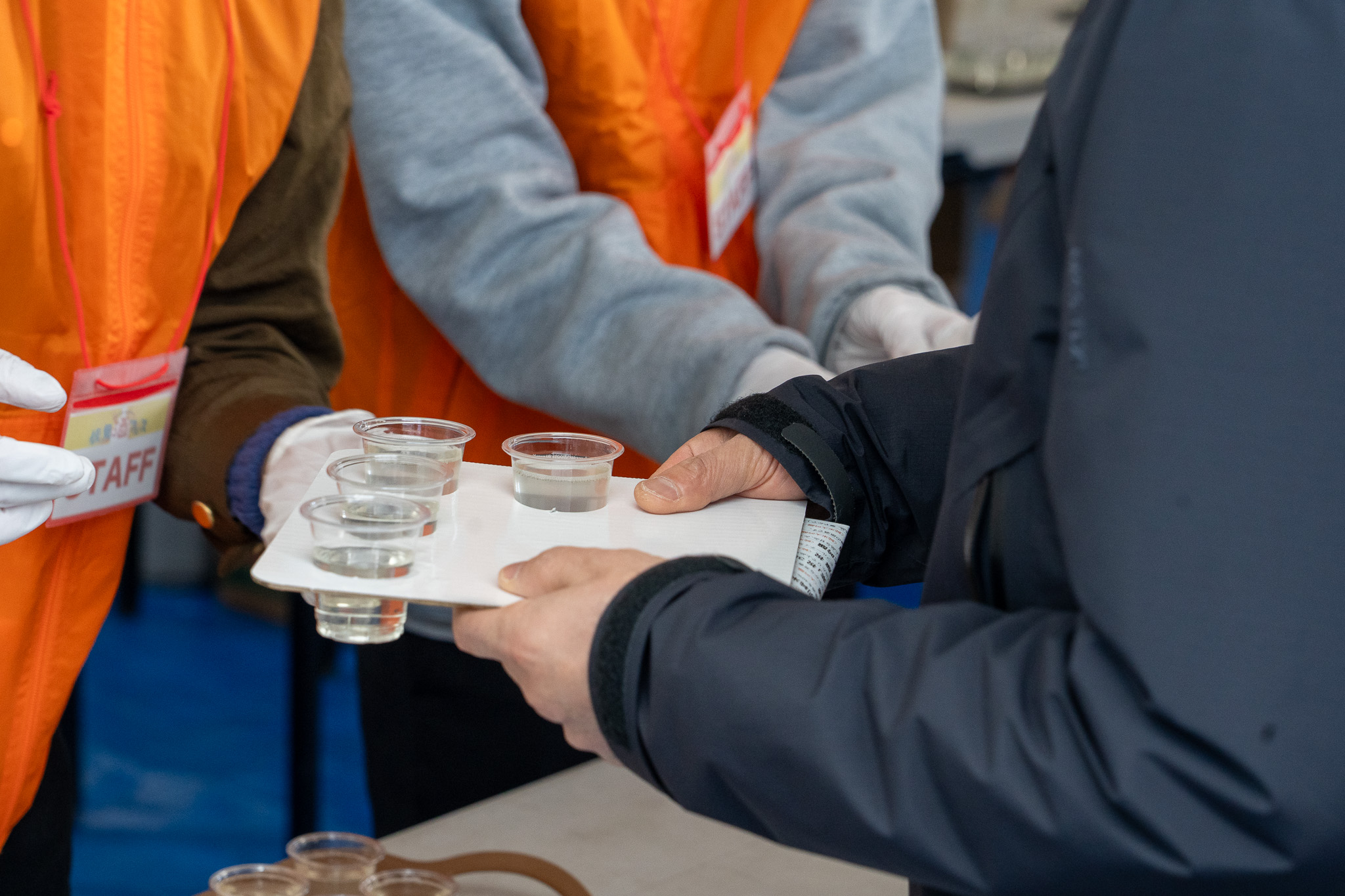 [招德酒造(花洛)]ではこの時期限定の「活性にごり酒」の提供が行われた。昨年はあいにくの天気であったが、今年は天候にも恵まれる中、この時期しか飲めない味わいを楽しむことができた。