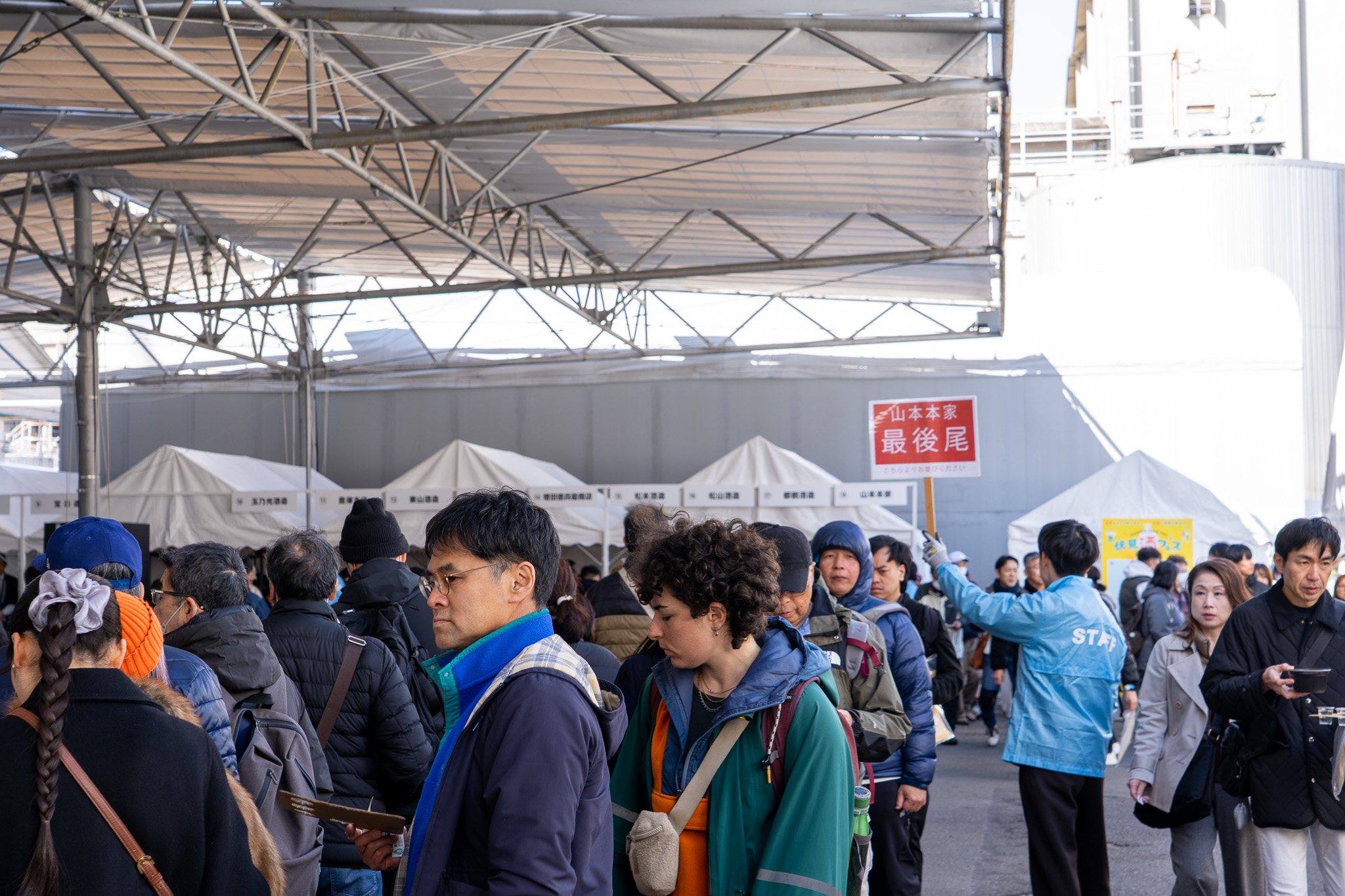 メイン会場から最も近くに蔵を構える[北川本家(富翁)]では当日限定酒を含めた様々な銘柄を求めて多くの来場者で賑わった。