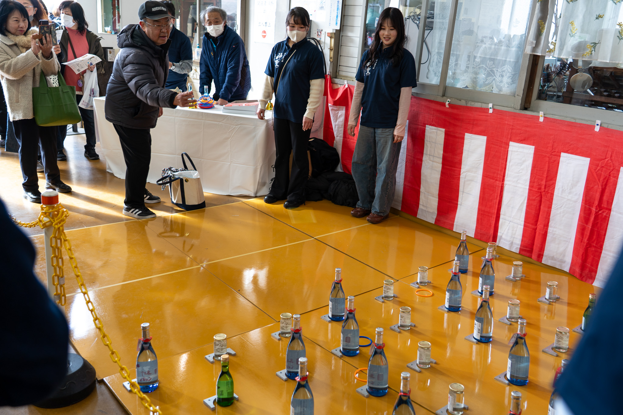 [山本本家(神聖)]では蔵の中での試飲に加えて、輪投げによる日本酒プレゼント企画が実施されていた。年々グレードアップを続け、来場者を楽しませる気概が感じられる。