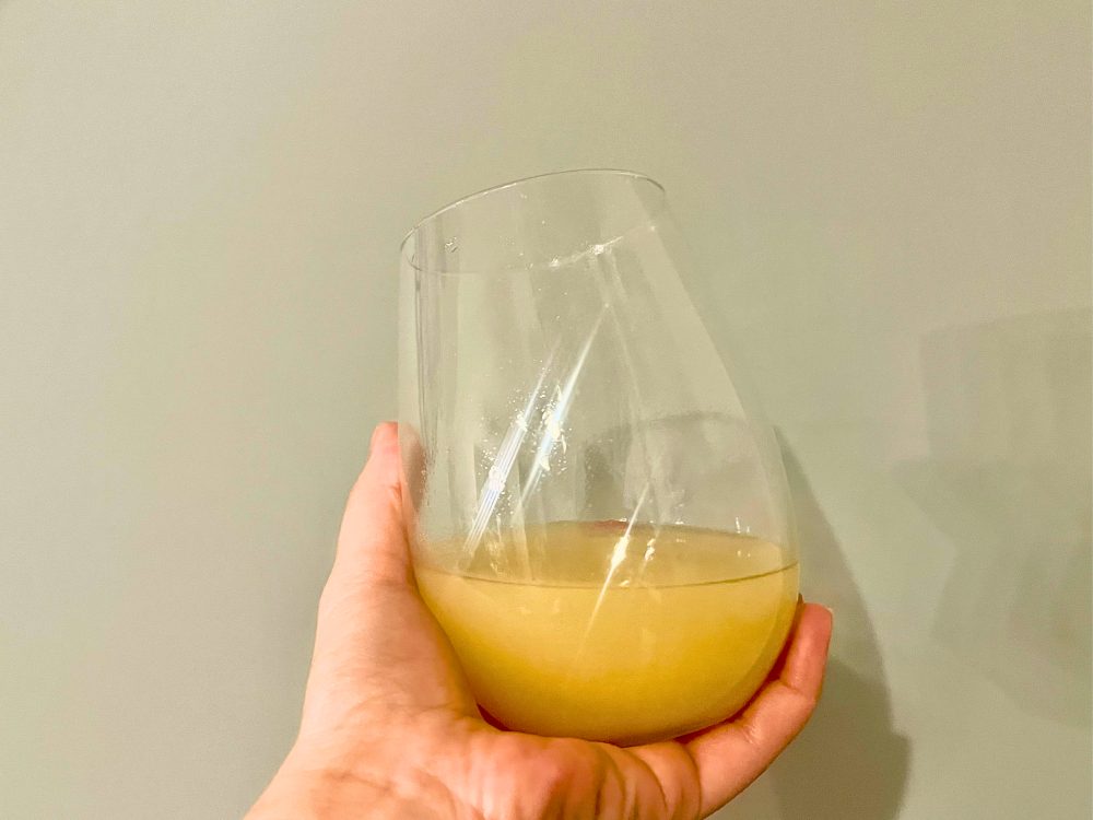 筆者が特に衝撃を受けたのは、「夕日の輝き(オレンジ割り)」。「にごり酒に柑橘?」という疑念が、一口で歓喜へと変わる逸品だ。 オレンジのフレッシュさで五郎八がより飲みやすくなり、さらに五郎八特有の粒々感がまるで果肉のようなアクセントが光る。