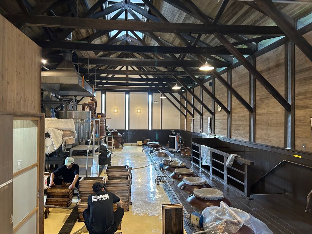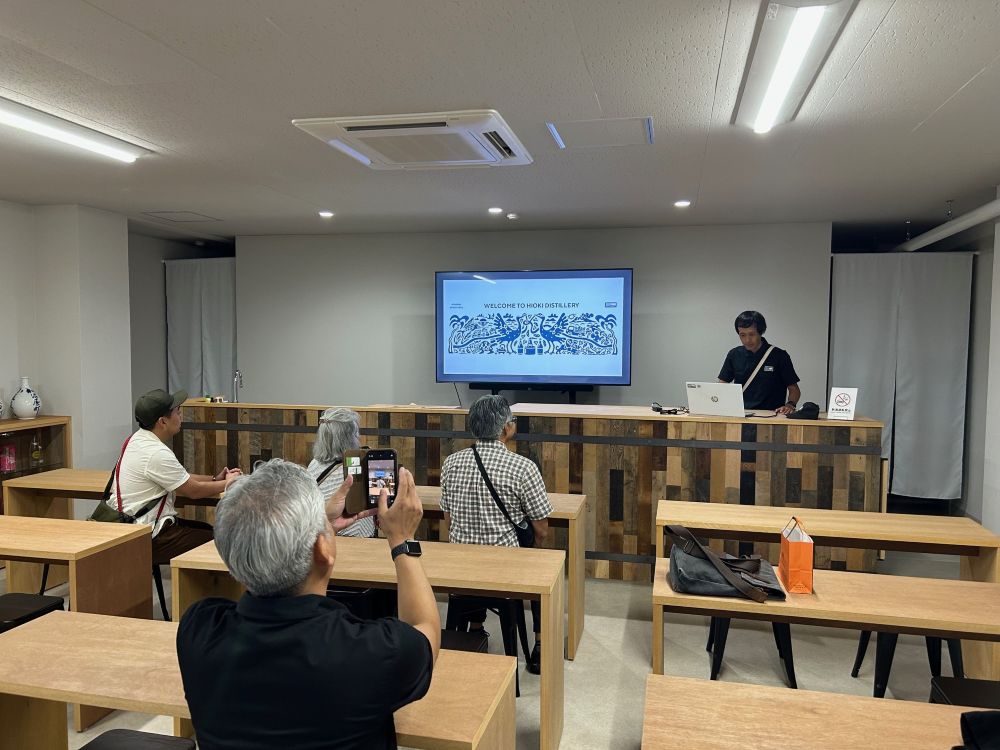 同社は現在、焼酎からウイスキー、クラフトジンまで幅広く展開する鹿児島を代表する焼酎・蒸留酒メーカーだが祖業は焼酎。シラス台地に抱かれたこの地に、近年設立された近代的なセミナーハウスで蔵長兼マスターブレンダーの枇榔誠氏から、500年に及ぶ歴史ある焼酎文化と同社の焼酎造りの歴史と、伝統の技と最新技術を融合したこだわりの製法について学ぶ。
