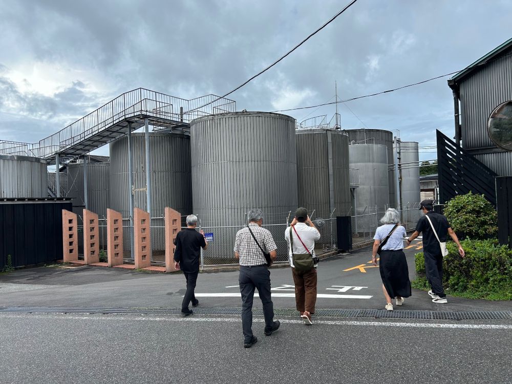 焼酎の付加価値向上を実現させたという話を聴きゲストは「一体どんな香味がするのか・・・」と関心。さっそく同社の多くの商品を産む「日置蒸溜蔵」へと向かう。