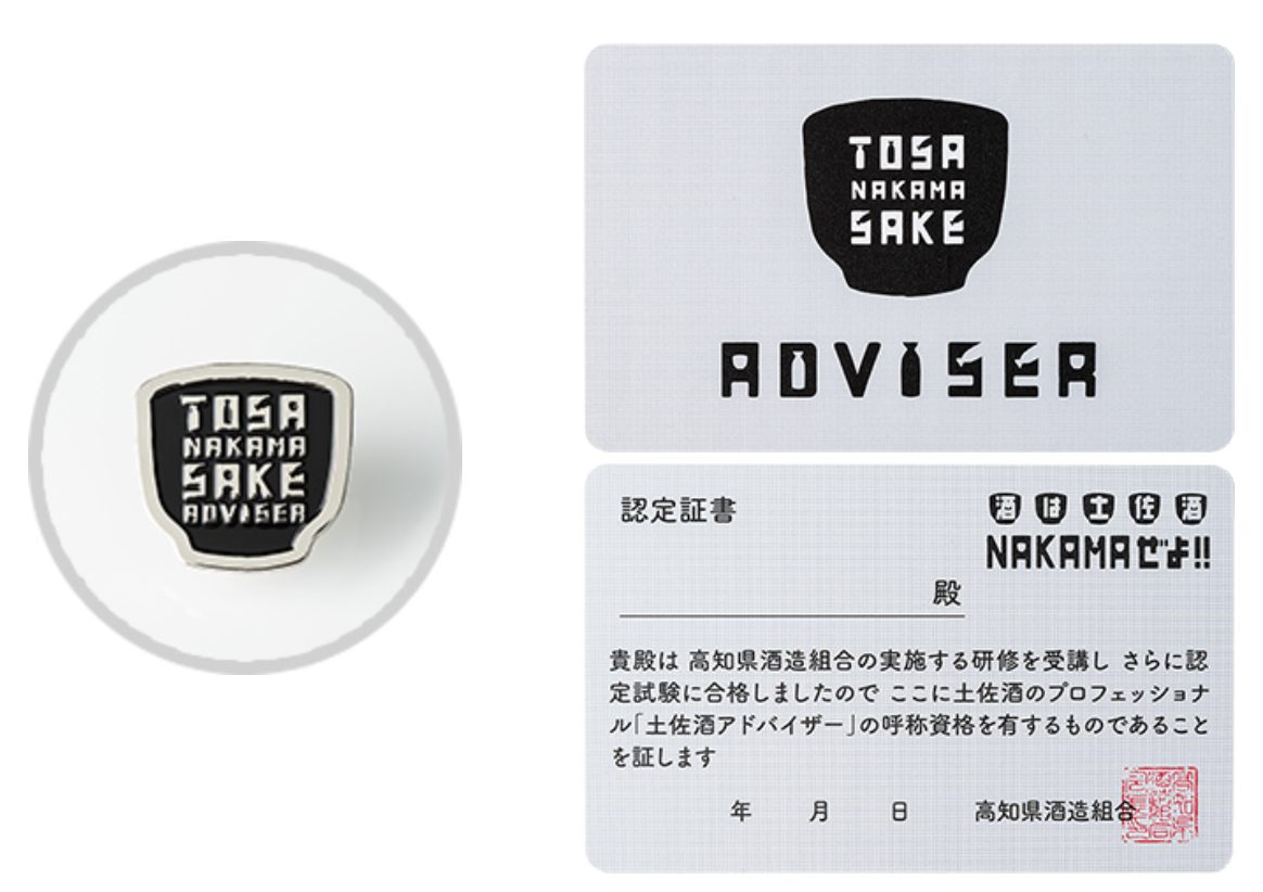 1.協会特製の「土佐酒アドバイザー認定証」「認定ピンバッジ」の進呈
